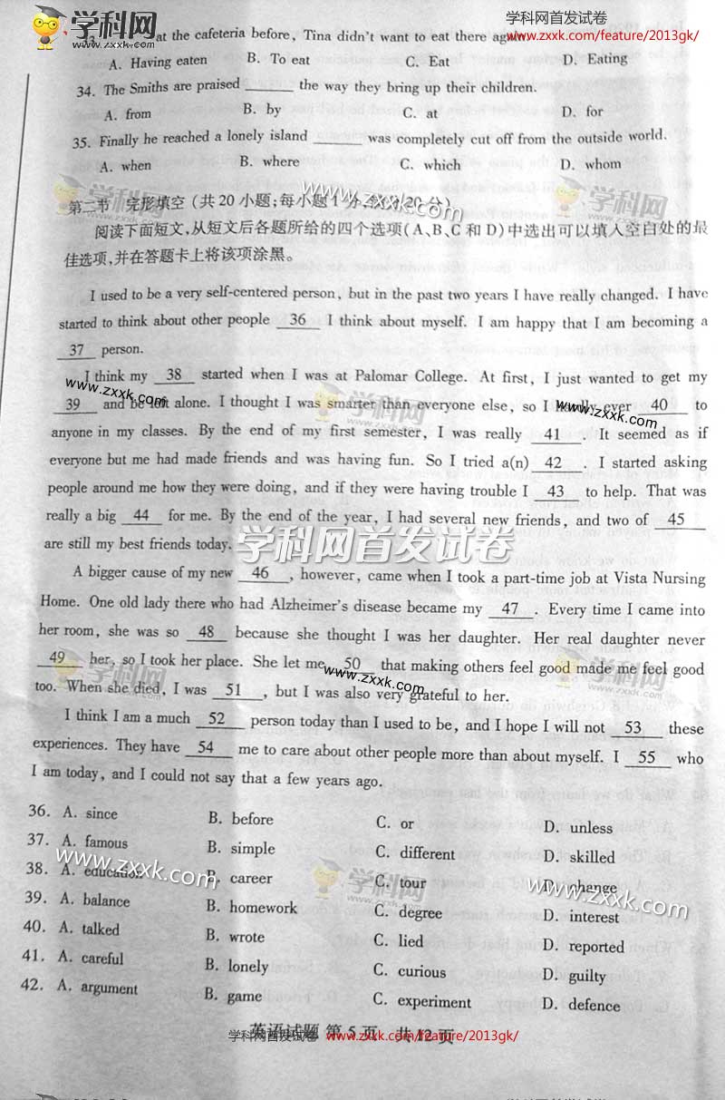 2013年山东高考英语卷试题及答案(图片版)(5)