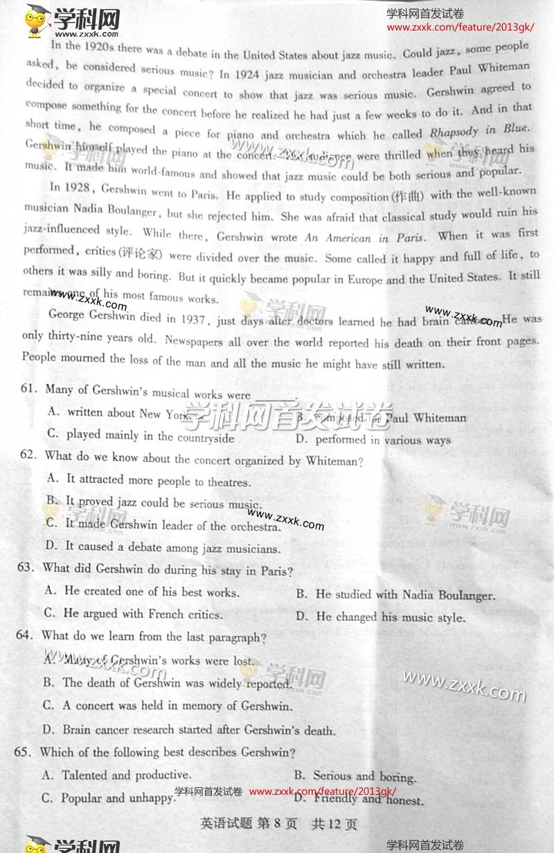2013年山东高考英语卷试题及答案(图片版)(8)
