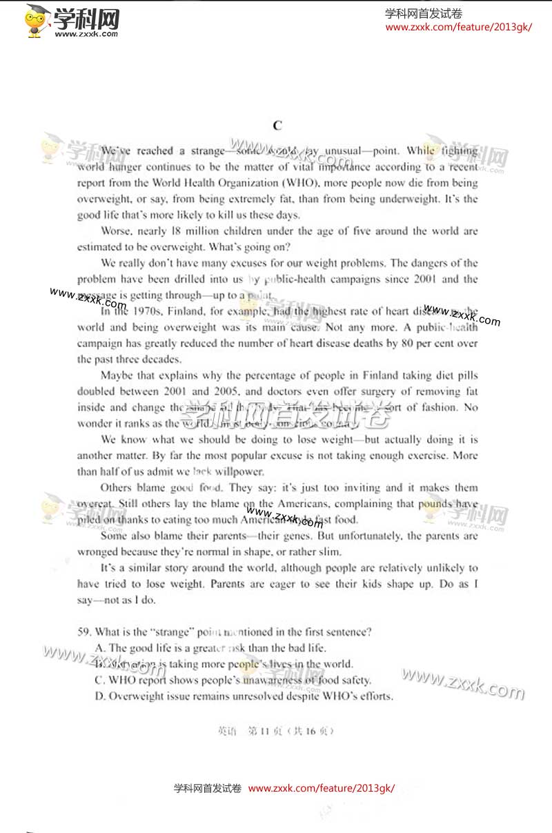 2013年湖北高考英语卷试题及答案(图片版)(11)