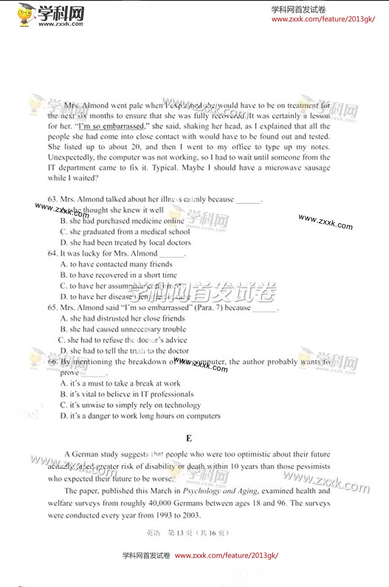 2013年湖北高考英语卷试题及答案(图片版)(13)