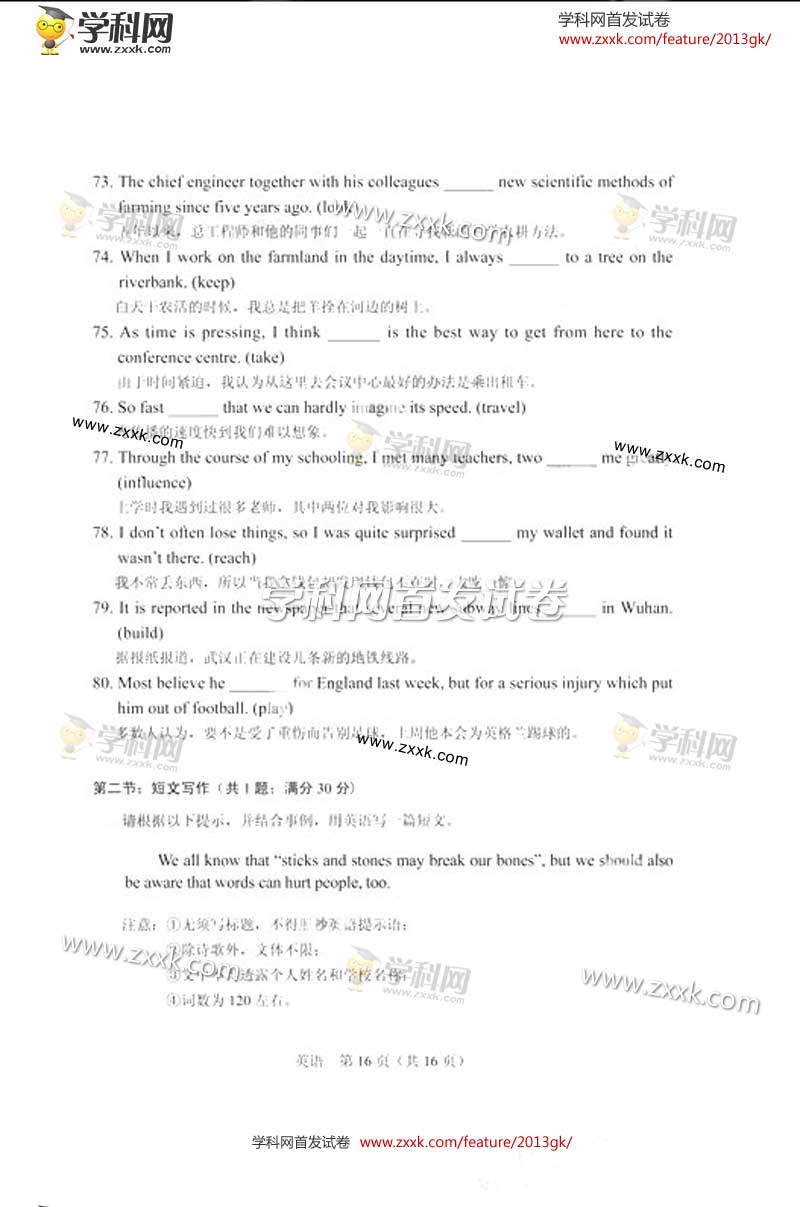 2013年湖北高考英语卷试题及答案(图片版)(16)