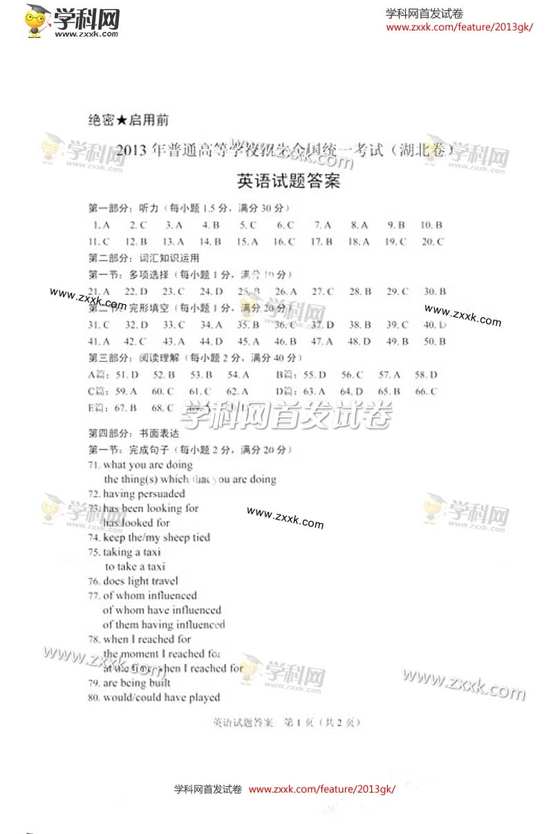 2013年湖北高考英语卷试题及答案(图片版)(17)