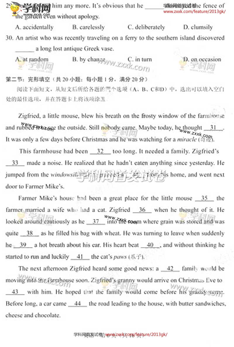 2013年湖北高考英语卷试题及答案(图片版)(6)