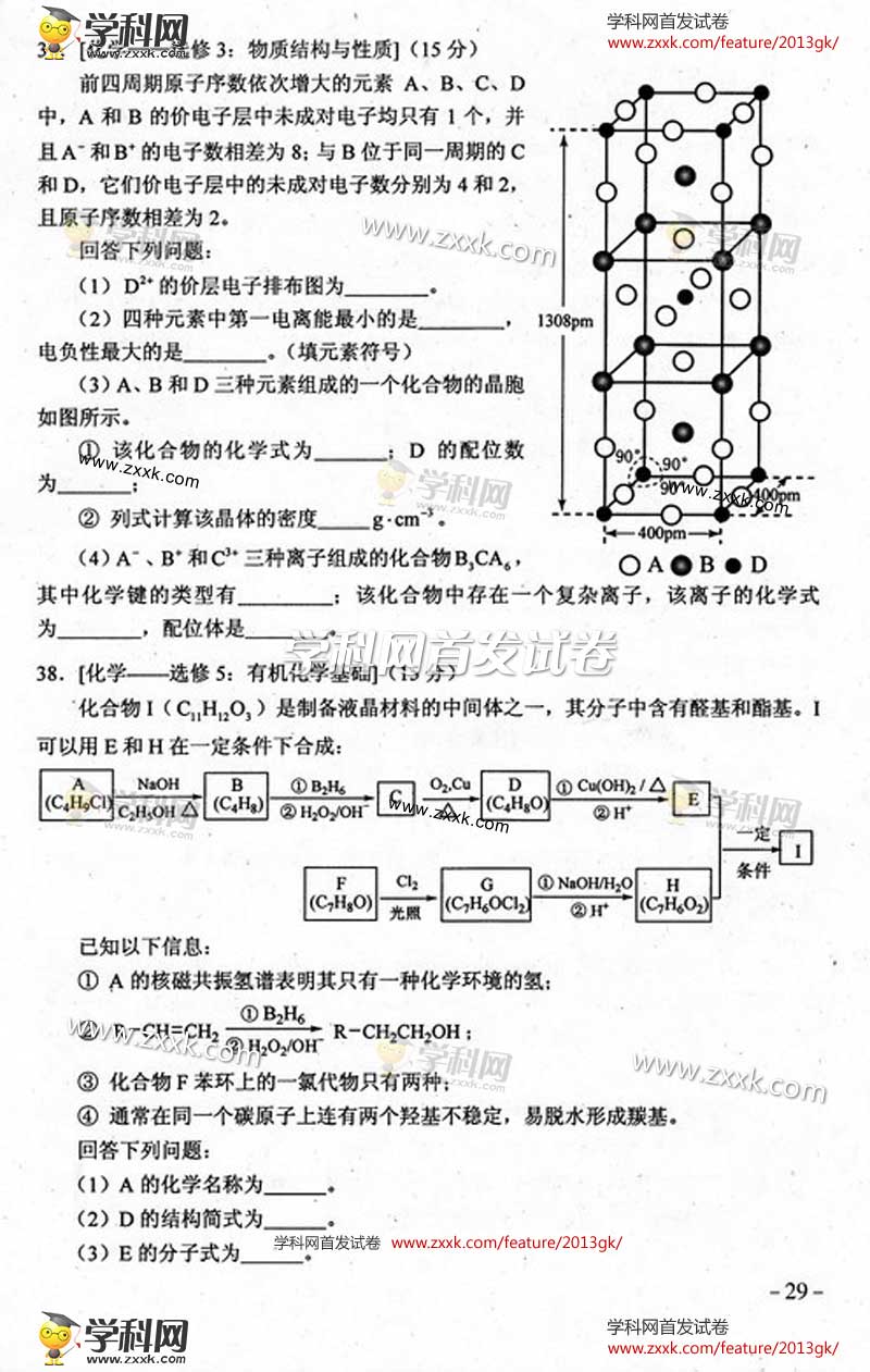 2013年高考新课标Ⅱ理综卷试题及答案图片版(12)