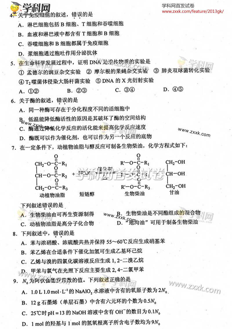 2013年高考新课标Ⅱ理综卷试题及答案图片版(2)