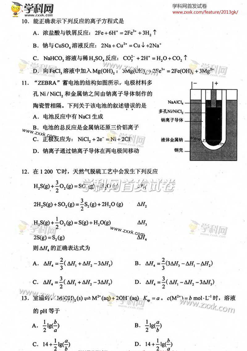2013年高考新课标Ⅱ理综卷试题及答案图片版(3)