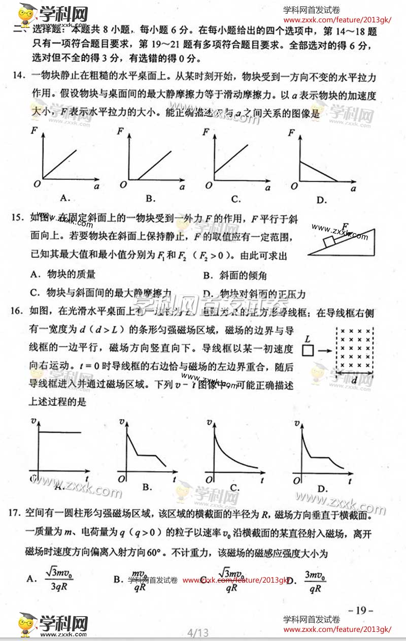 2013年高考新课标Ⅱ理综卷试题及答案图片版(4)