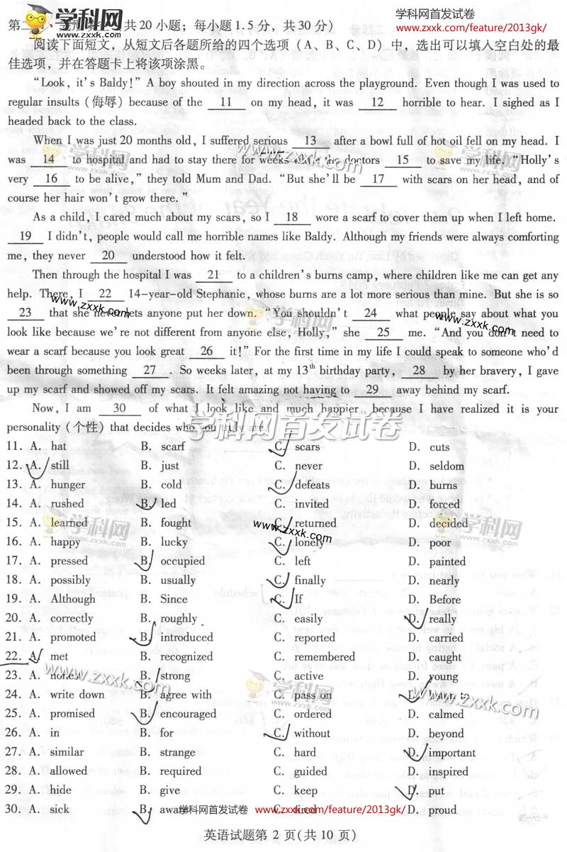 2013年四川高考英语卷试题及答案(图片版)(2)
