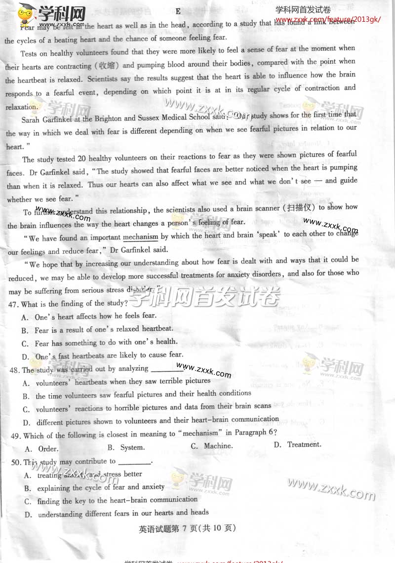 2013年四川高考英语卷试题及答案(图片版)(7)