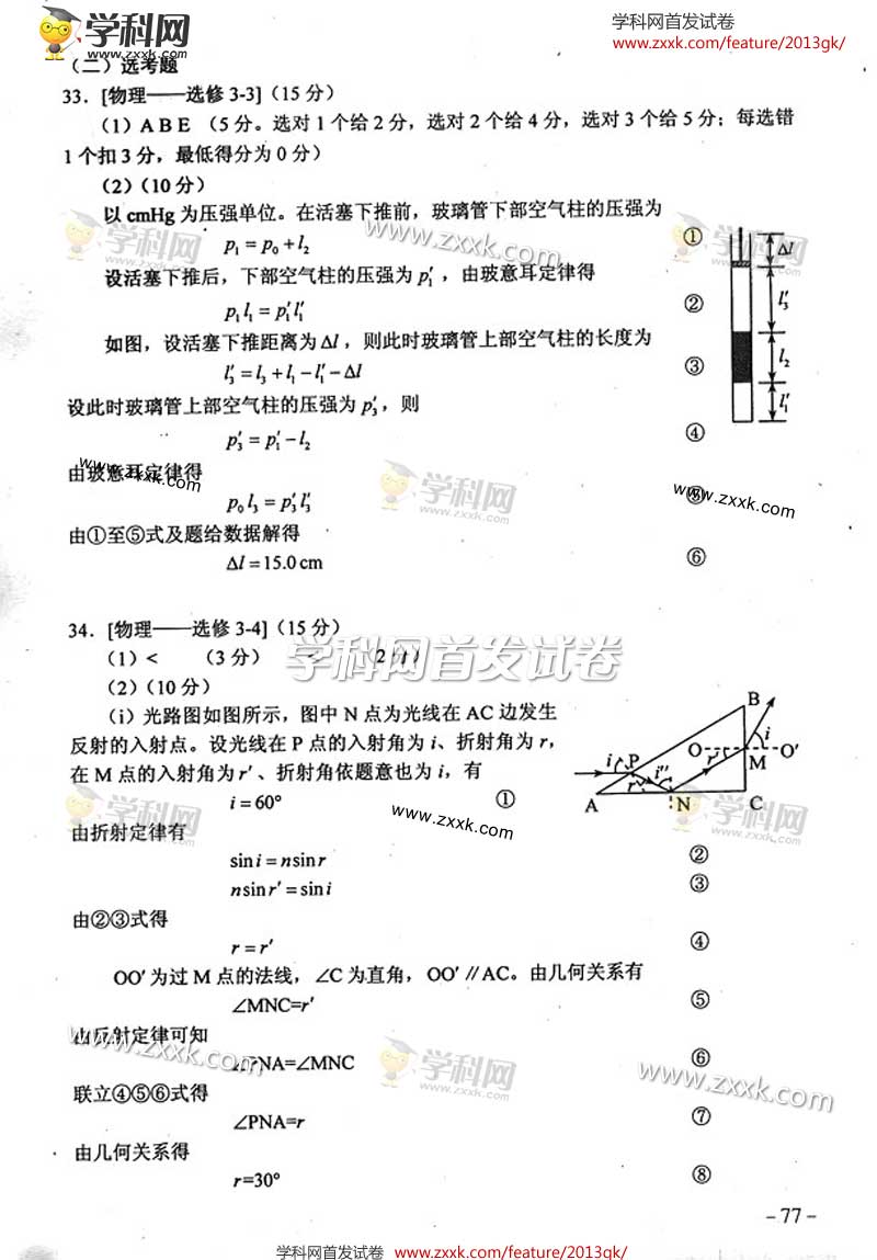 2013高考新课标Ⅱ理综卷答案抢先看图片版(5)