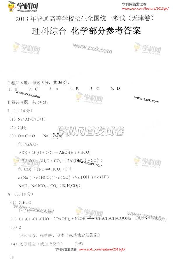 2013年天津高考理综试题答案抢先看图片版(5)