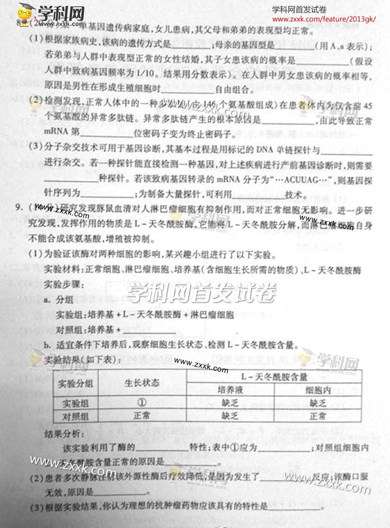 2013年高考重庆理综卷试题及答案图片版(12)