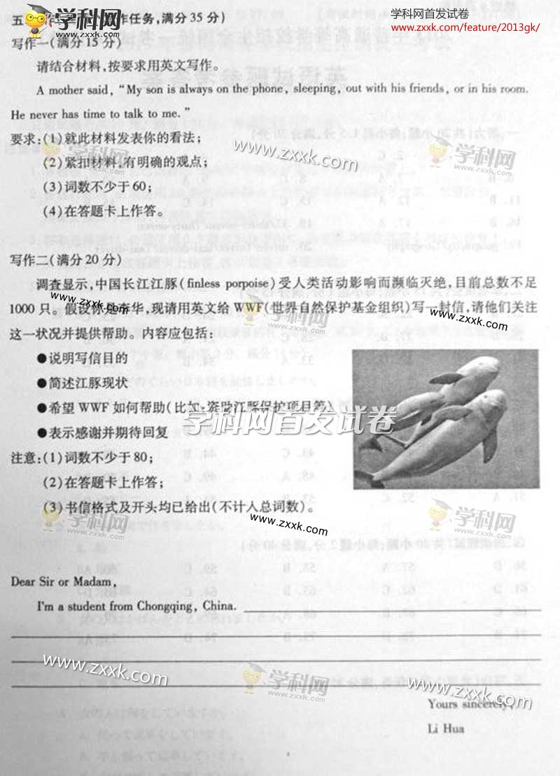 2013年重庆高考英语试题及答案(图片版)(15)