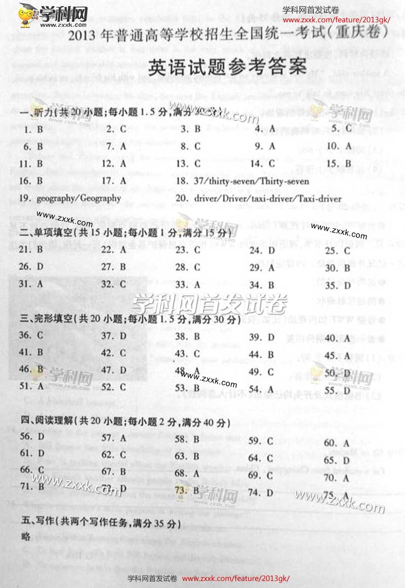 2013年重庆高考英语试题及答案(图片版)(16)