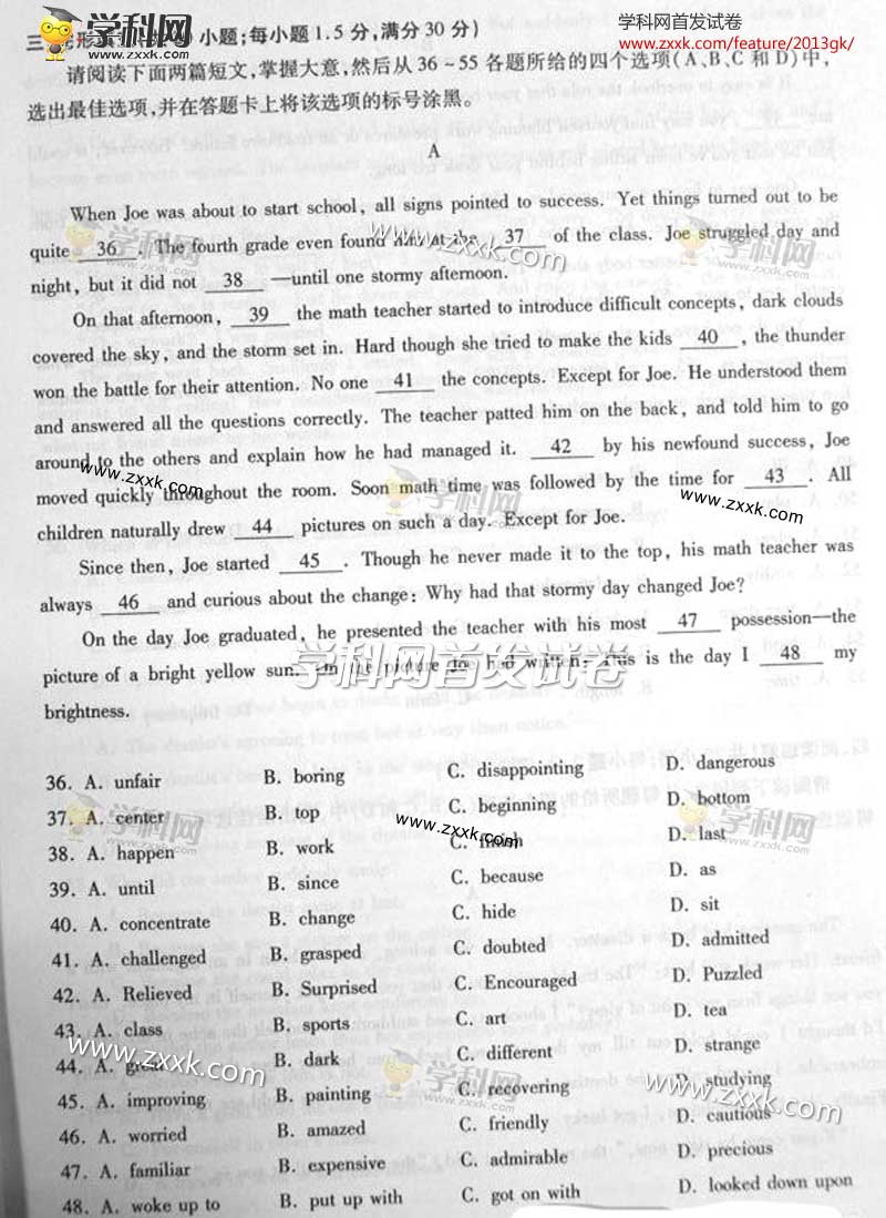 2013年重庆高考英语试题及答案(图片版)(7)