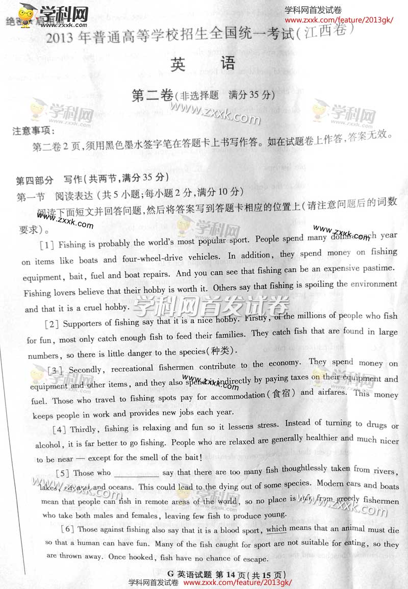 2013年江西高考英语试题及答案(图片版)(14)