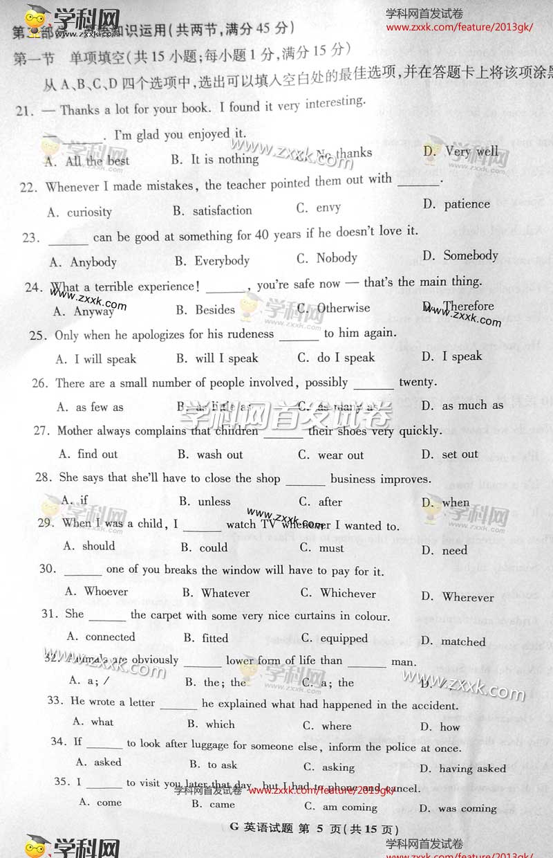2013年江西高考英语试题及答案(图片版)(5)