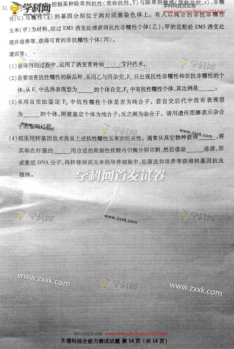 2013年浙江高考理综卷试题及答案图片版(14)
