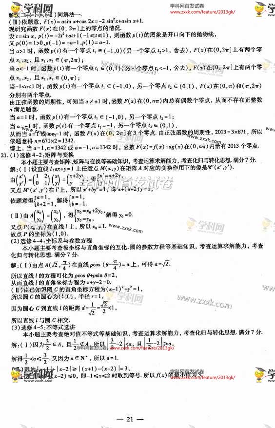 2013年福建高考理数卷试题及答案图片版(7)