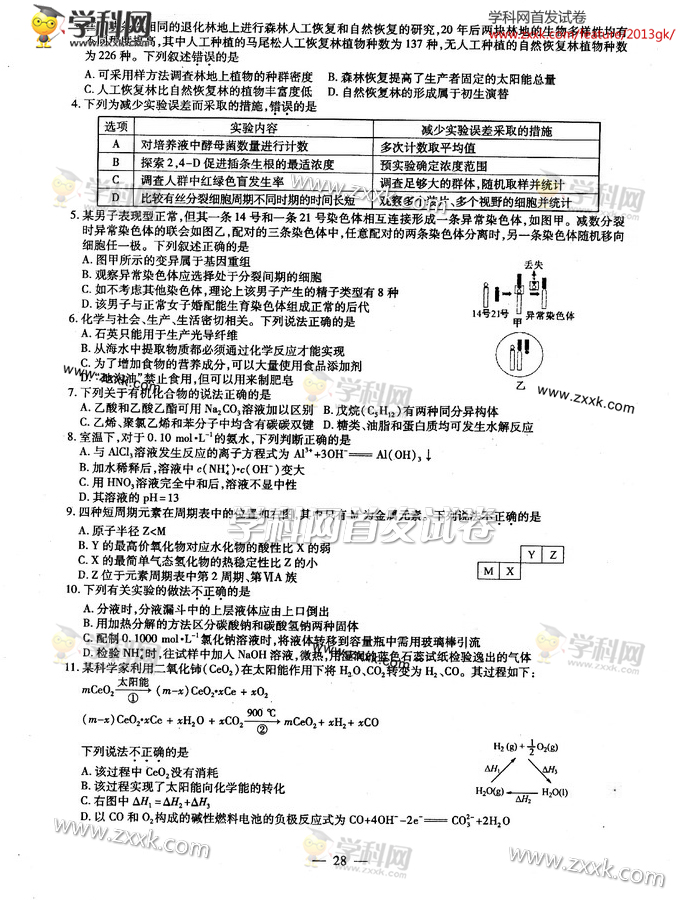 2013年福建高考理综卷试题及答案图片版(2)