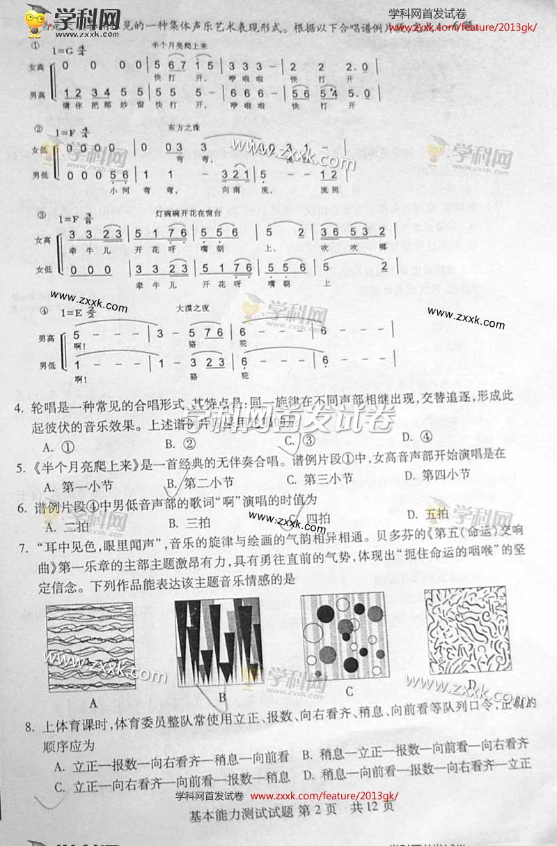 2013年山东高考基本能力卷试题及答案图片版(2)