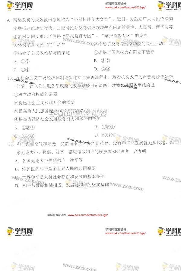 2013年天津文综试题及答案抢先看图片版(4)