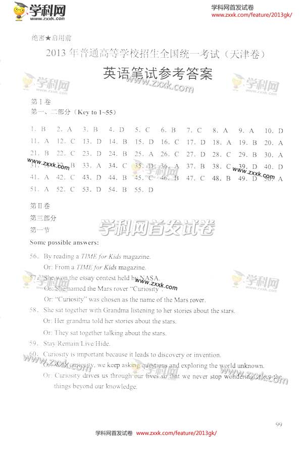 2013年天津高考英语试题及答案(图片版)(20)