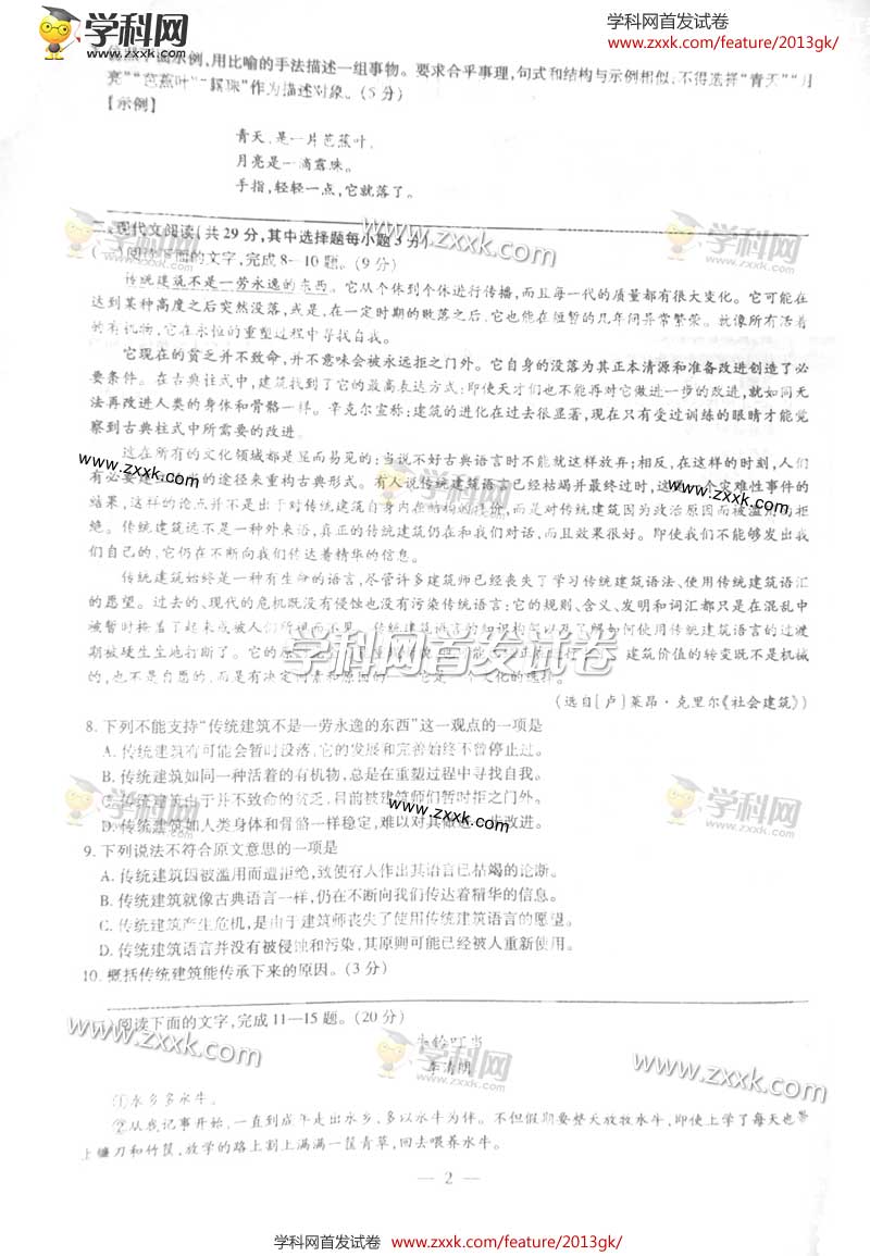 2013年浙江高考语文试题及答案(图片版)(2)