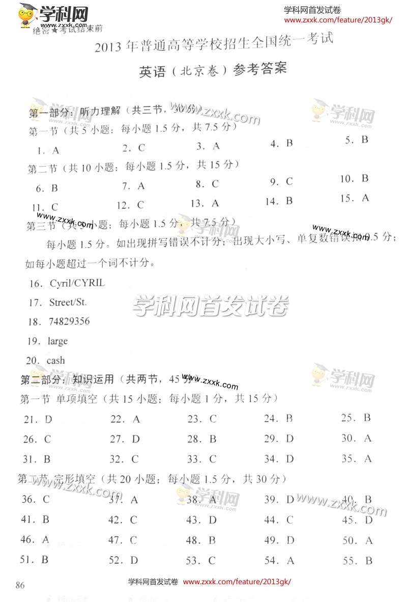 2013年北京高考英语卷试题及答案(图片版)(17)