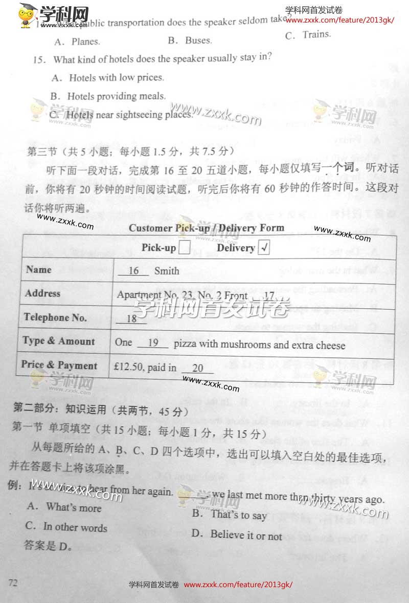 2013年北京高考英语卷试题及答案(图片版)(3)