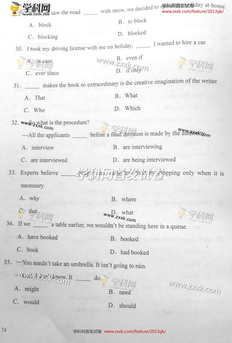 2013年北京高考英语卷试题及答案(图片版)(5)