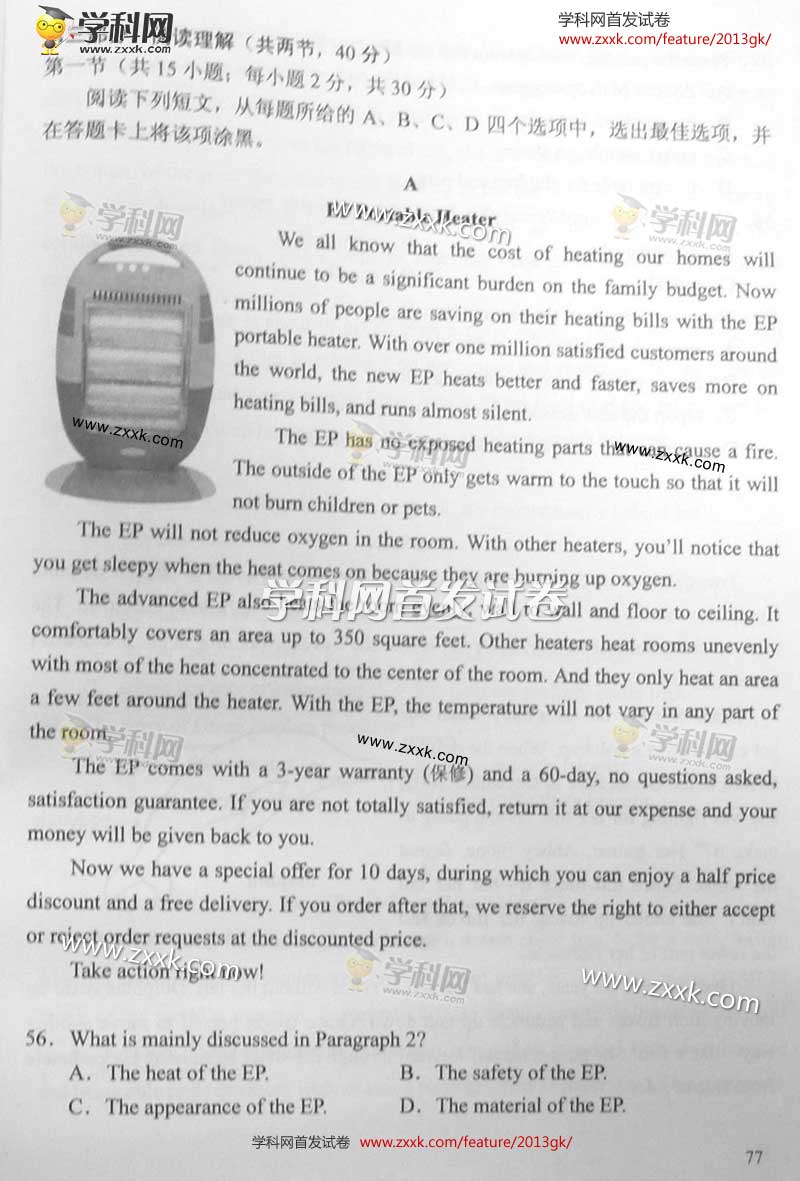 2013年北京高考英语卷试题及答案(图片版)(9)