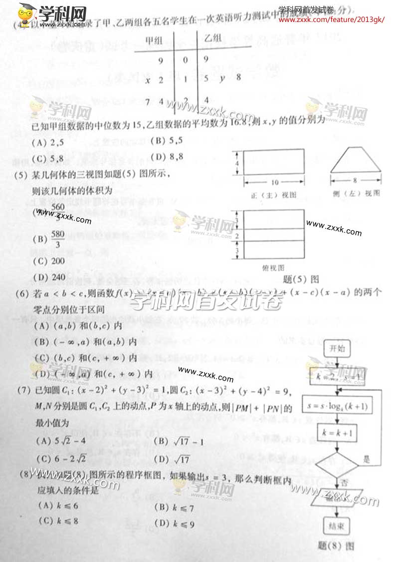2013年重庆高考理科数学试题及答案(图片版)(2)