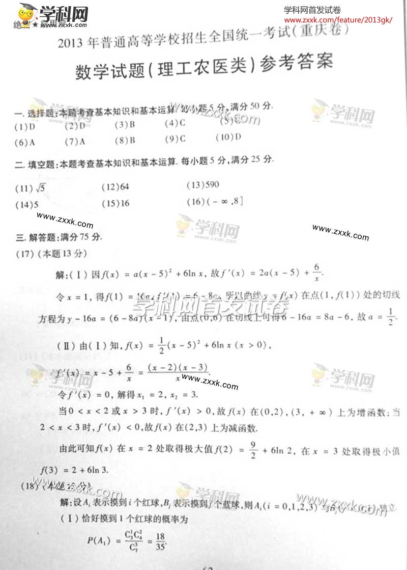2013年重庆高考理科数学试题及答案(图片版)(6)