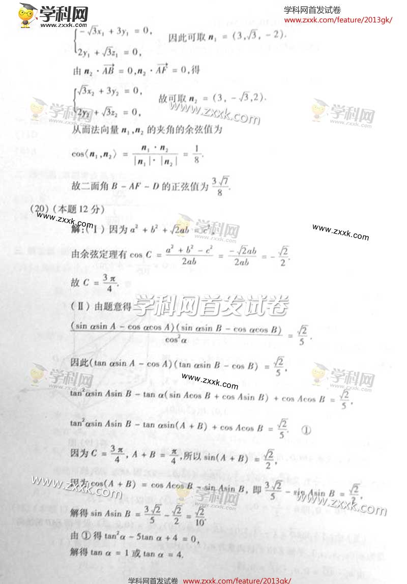 2013年重庆高考理科数学试题及答案(图片版)(8)
