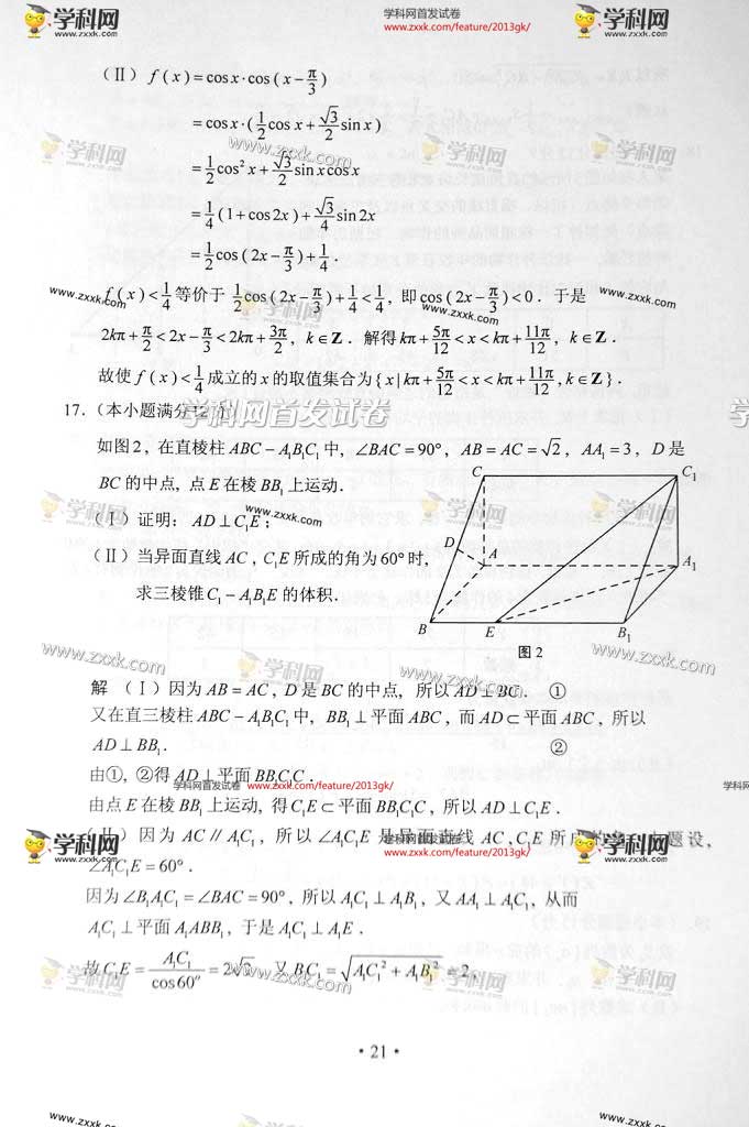 2013年湖南高考文科数学试题及答案(图片版)(3)