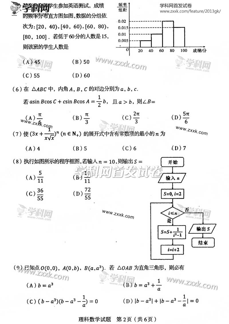 2013年辽宁高考理科数学试题及答案(图片版)(2)