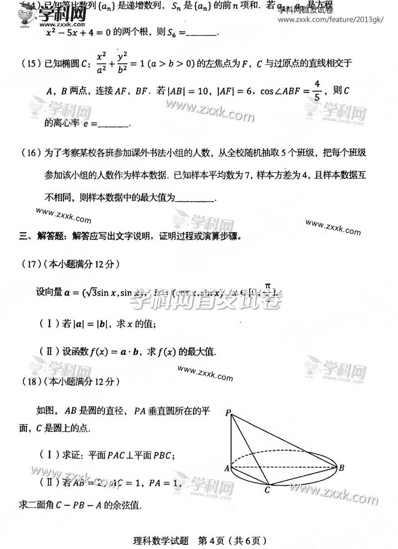 2013年辽宁高考理科数学试题及答案(图片版)(4)