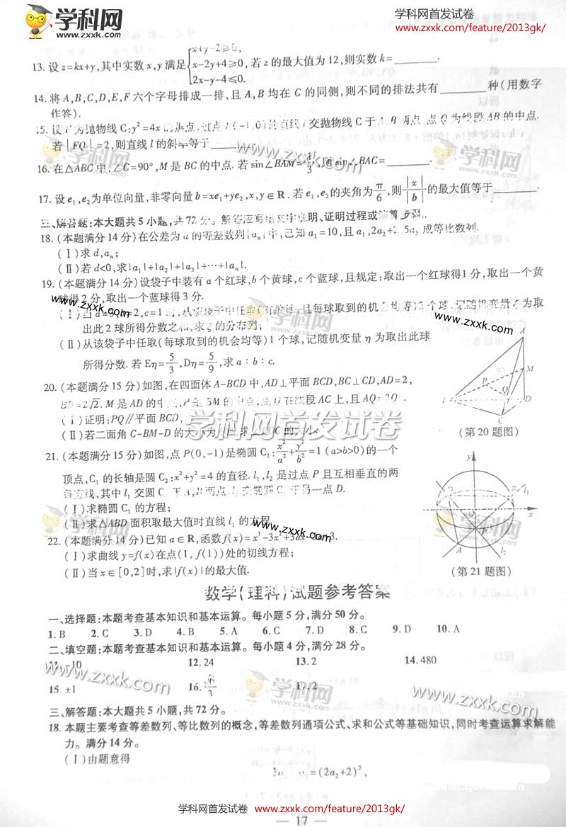 2013年浙江高考理科数学试题及答案(图片版)(2)