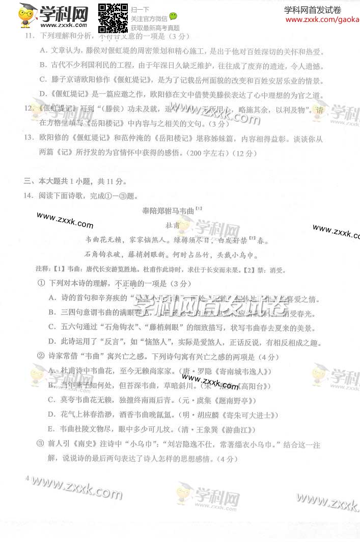 2014年高考北京语文试题及答案(图片版)(4)