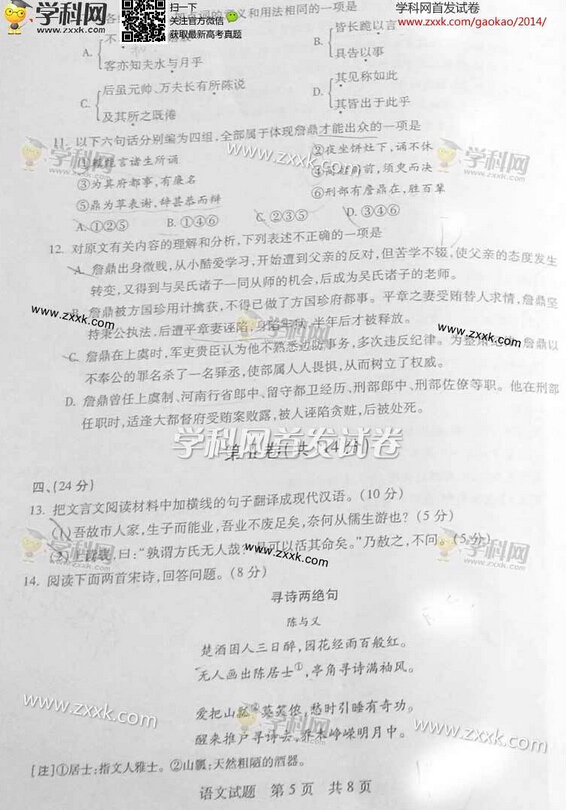 首发2014年高考山东卷语文试题及答案(清晰版)(5)