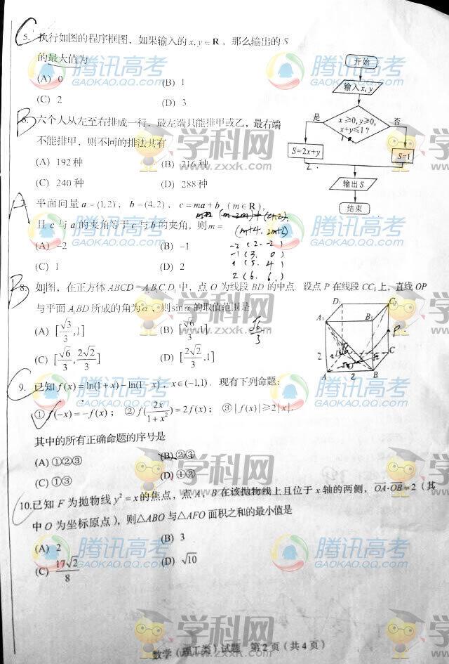 2014年四川高考数学(理)真题及答案(图片版)(2)