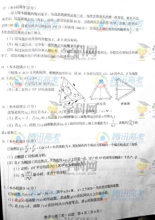 2014年四川高考数学(理)真题及答案(图片版)(4)