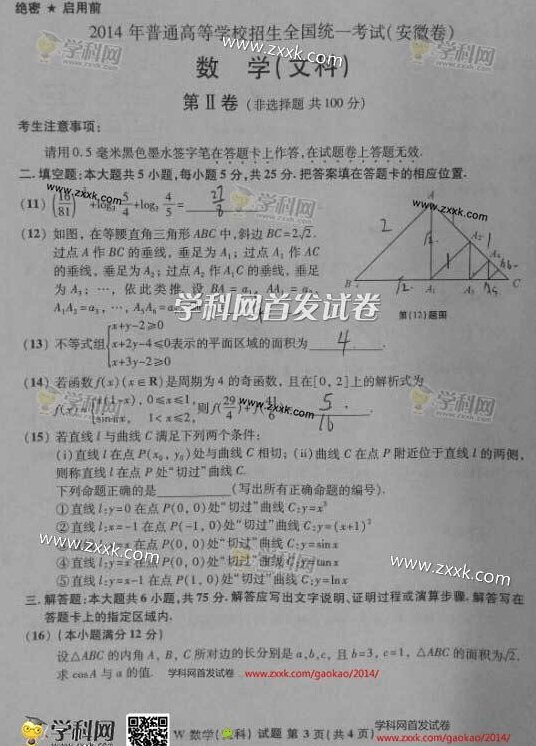 2014年安徽高考理科数学真题及答案(图片版)(3)