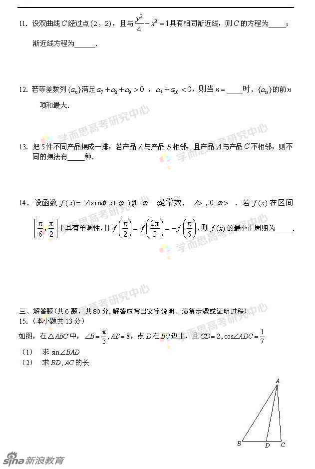 首发2014年北京高考理科数学真题及答案(清晰版)(3)