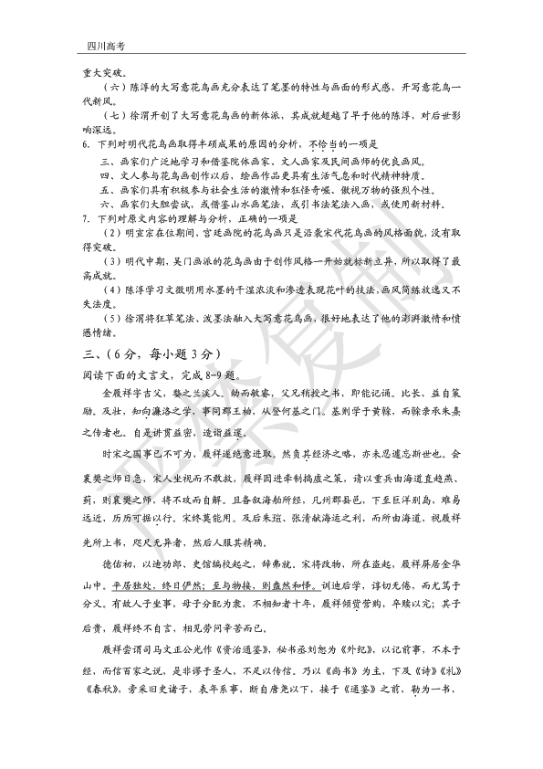 首发2014年四川高考语文真题及答案(清晰版)(3)