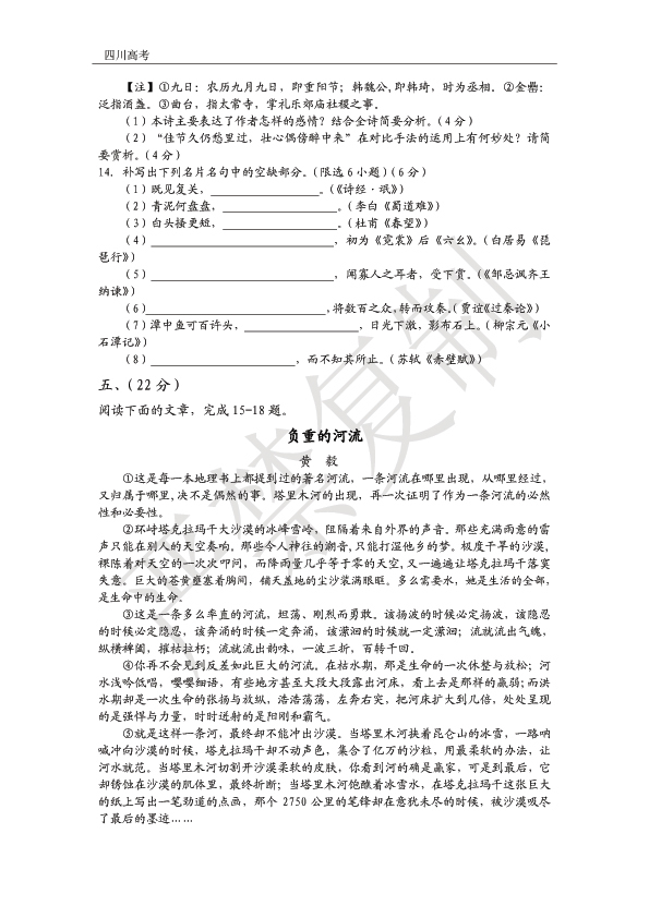 首发2014年四川高考语文真题及答案(清晰版)(5)