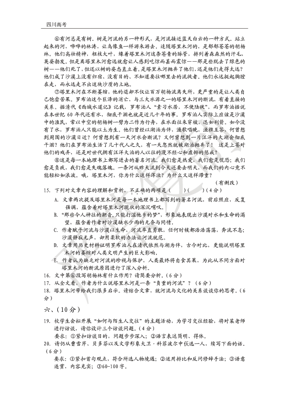 首发2014年四川高考语文真题及答案(清晰版)(6)