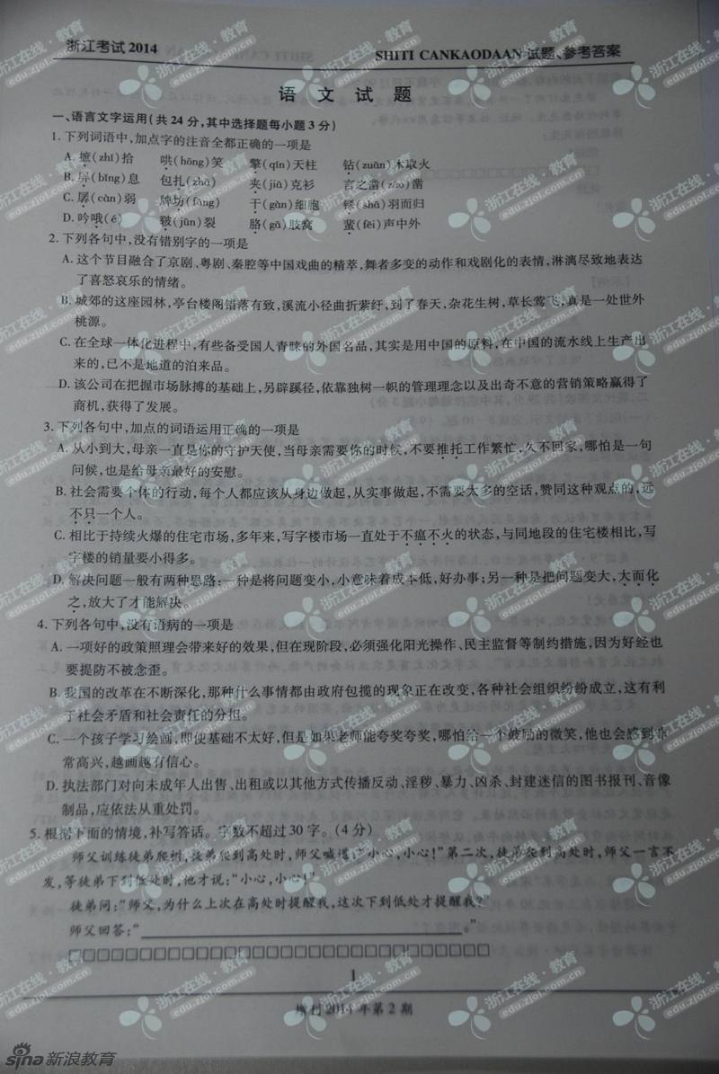 育路高考网首发2014年浙江高考语文真题及答案,高考过后及时发布最新的高考真题及答案解析,敬请期待!