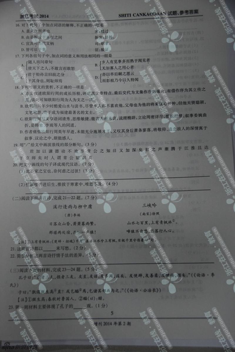 2014年浙江高考语文真题及答案(高清图片版)(5)